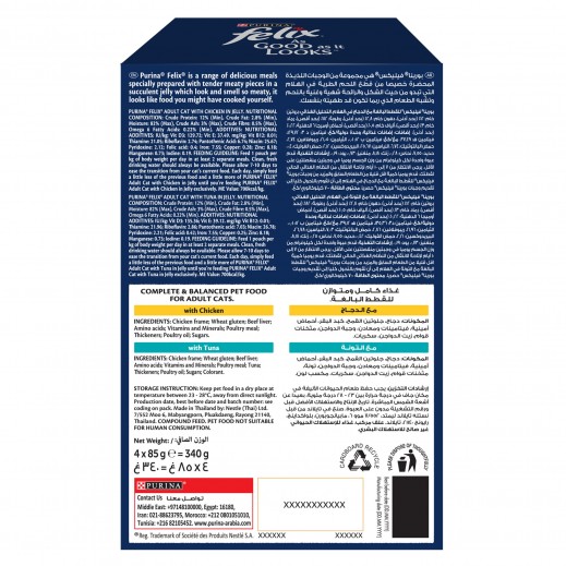 كمية Felix طعام القطط الرطب بالدجاج والتونة في الجيلي كما يبدو لذيذاً، 85 جرام (عبوة من 4)