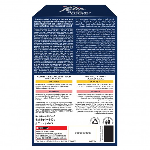 كمية Felix As Good as it Looks طعام قطط رطب بالدجاج والسلمون في الهلام، 85 جرام (عبوة من 4)