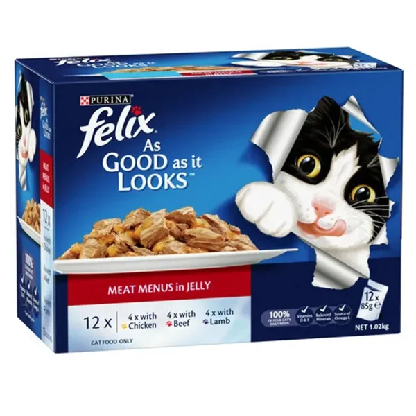 Felix As Good as it Looks Meat Menus in Jelly Wet Cat Food, 85g (Pack of 12)