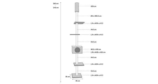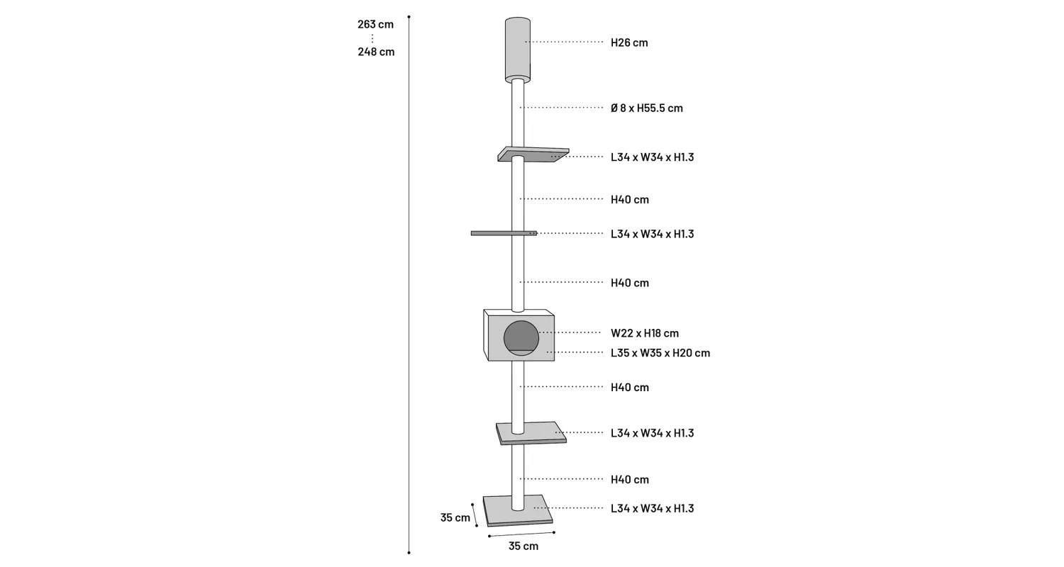- Thickness base plate: 1,3 cm and diameter scratching post: 8 cm