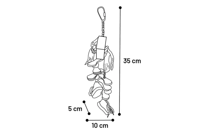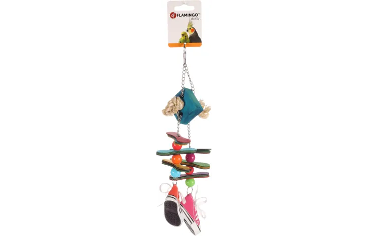 - Colourful toy with beads, sports shoes and ropes for tasty nibbling