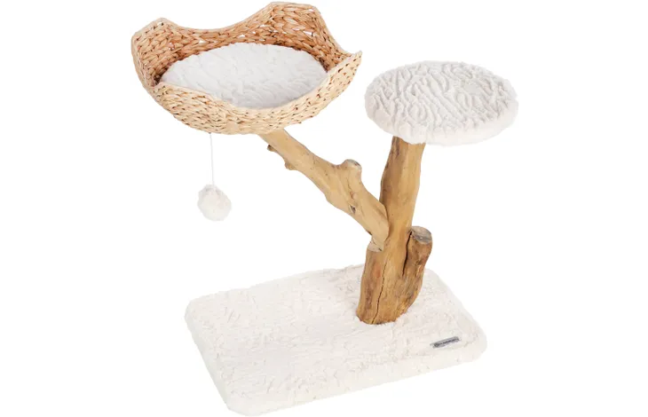 Let your cat have a play and chill out with the Carlito scratching post! Made from coffee tree wood and soft plush for ultimate comfort. Comes with a removable cushion for naps and a toy for extra fun. A must-have for your pampered four-legged friend!