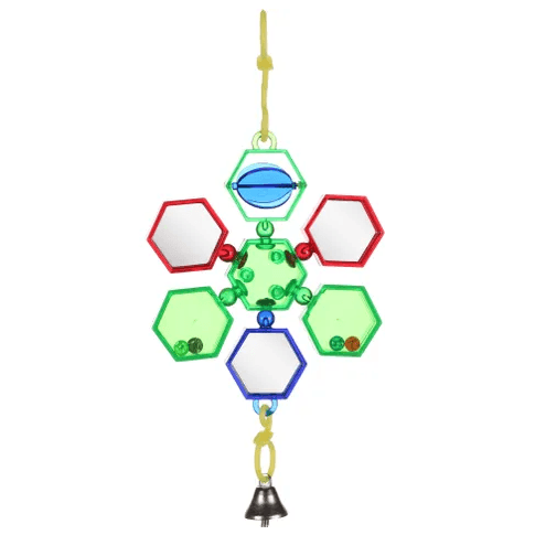 Flamingo Delta Mirror Bird Toy, Reb, Blue Mirrors