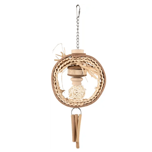 Give your birdcage a bohemian touch with this super cute cage hanger! Made from natural materials and perfect for providing the necessary challenge. Easy to attach and the chain adds extra playfulness. With a size of 40cm, make sure to provide enough space in the cage.