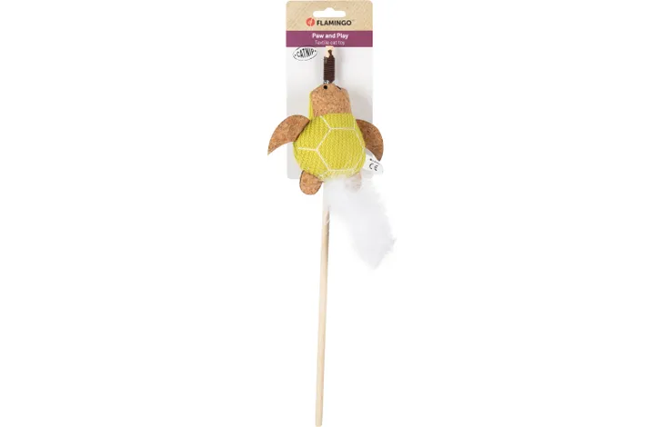 Treat your cat to this turtle-themed Lemmo wand!! Packed with catnip, feathers, and a cork-like texture to get their hunting instincts going. Made from wood and fabric for hours of playtime fun.