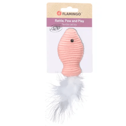 Check out this cute cat toy: a fish full of surprises! Complete with a rattling sound, catnip, and feathers for hours of playtime. Let your cat unleash her inner hunter with this colorful and irresistible toy! Available in multiple colors!