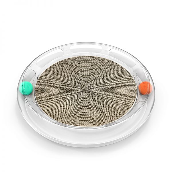 The 4-in-1 Cat Sratcher Playground provides hours of fun for your pet, and is a great way to encourage claw maintenance in a fun way. The playground features two Meow Planet balls and a scratching board. The blue Meow planet ball is filled with high quality, fresh catnip and the orange Meow planet includes a fun bell to entertain your cat for hours. The playground can also be used as a pet bed for naps, with the high density corrugated board providing both comfort and play.
