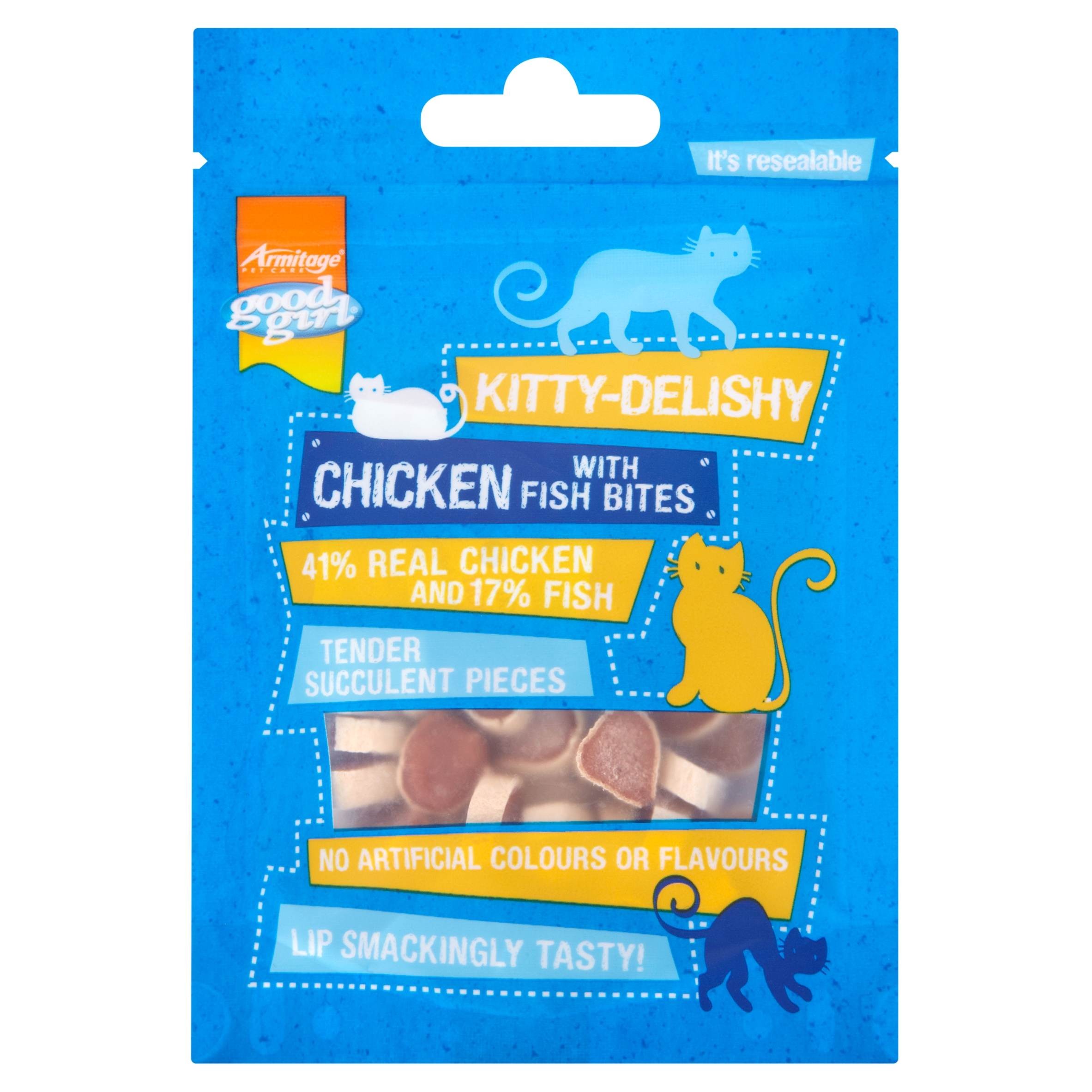 Lip Smackingly tasty treats for cats, made of 41% real chicken and 17% fish. No artificial colors or flavors.