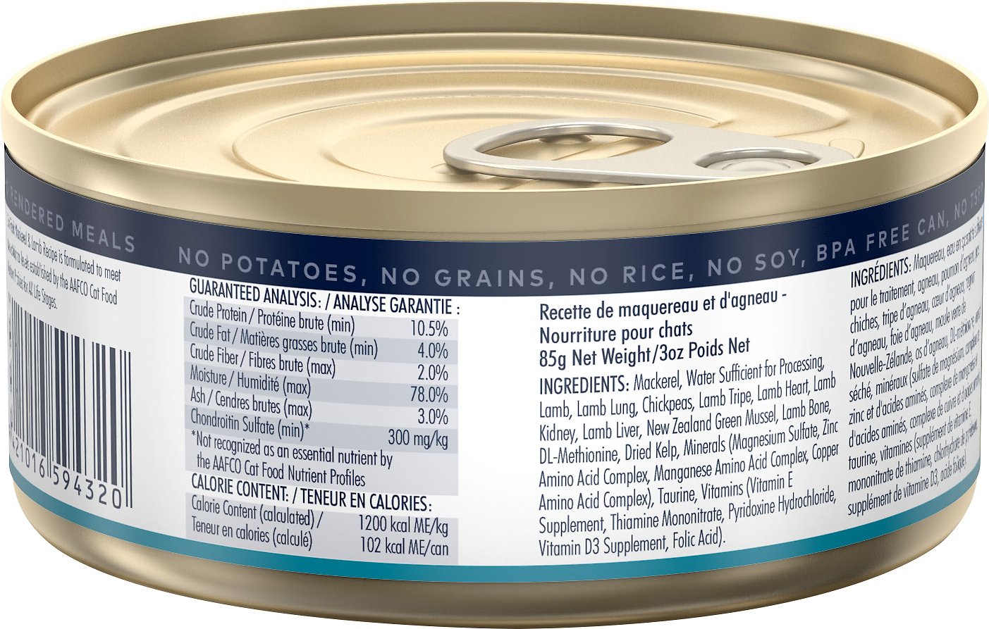 Caloric Content1200 kcal/kg; 102 kcal/3-oz can, 222 kcal/6.5-oz can